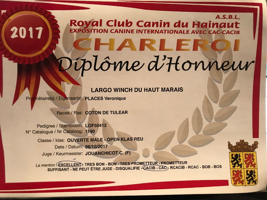 - 1er EXC CAC CACIB MEILLEUR DE RACE