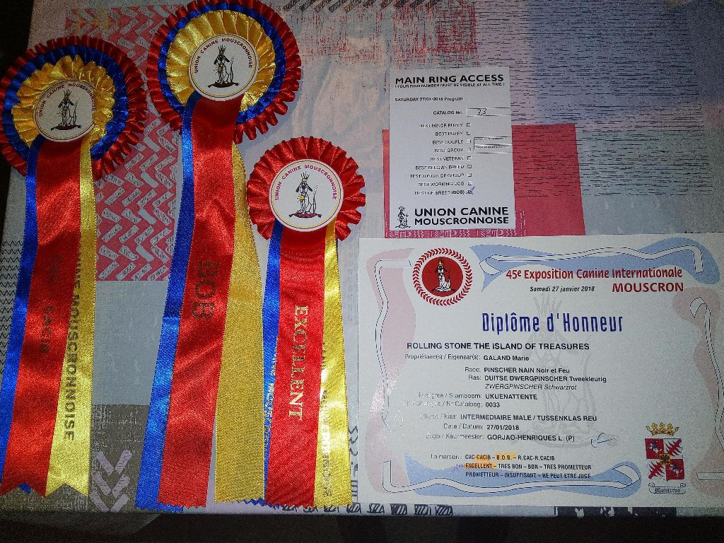 - Brussel Dog Show 16/12/2017 : 1er excellent, BOB mâle junior, BOB JUNIOR, BOS