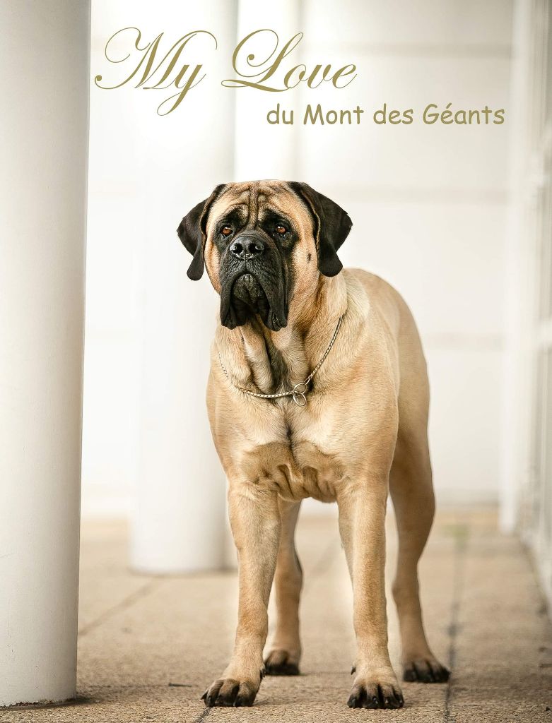My Love est une chienne bien construite, de couleur fauve , tres bien pigmentee (tous les ongles noirs,pas de tache blanche sur les pattes ou la poitrine, masque intense, yeux sombres). Extrement affectueuse, elle est vive et intelligente, sociable et caline. C'est une chienne athletique, tres musclée.