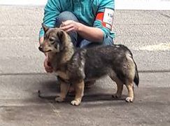 33 cm, DCC, joli sujet bien dans le type, exc.tête féminine, exc.encolure et ligne de dos, poitrine bien descendue, exc.fouet, aplombs et angulations corrects, allure correcte