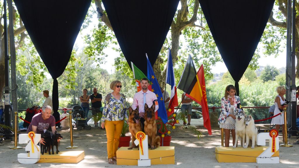 Deux chiennes présentées dans cette trés belle classe jeunes femelles :- 3ième Trés Bon : Roccapina Nirvana, en préparation à l'élevage,- 13ième Trés Bon : Mya Di Voghenza, un peu déçu car partie 8ième, nous perdons 5 places par manque d'apeleur!