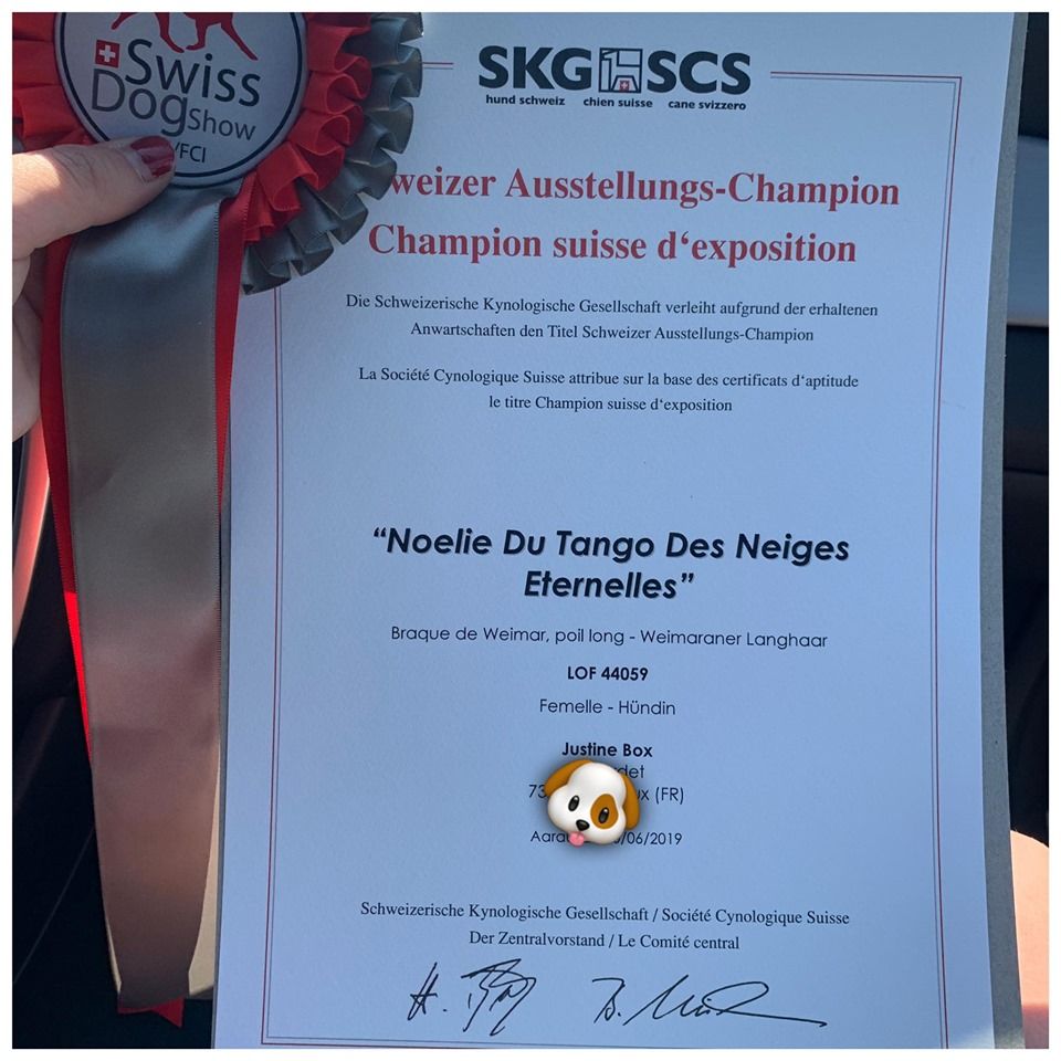 Chien Braque de Weimar CH. Noélie Du Tango Des Neiges Eternelles