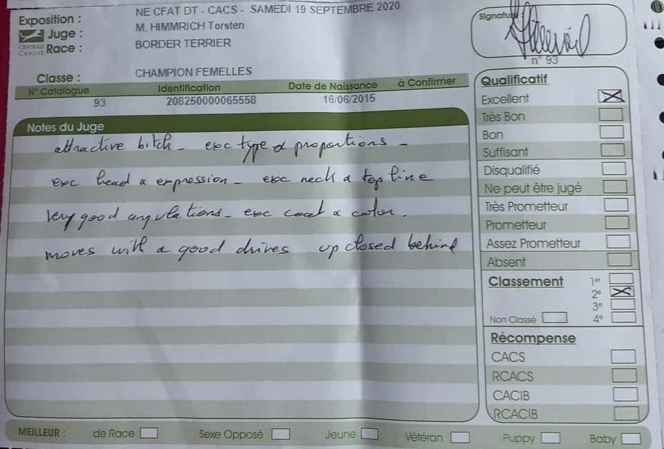 - 1ere exc classe ouverte, CAC, CACIB, Meilleure de race