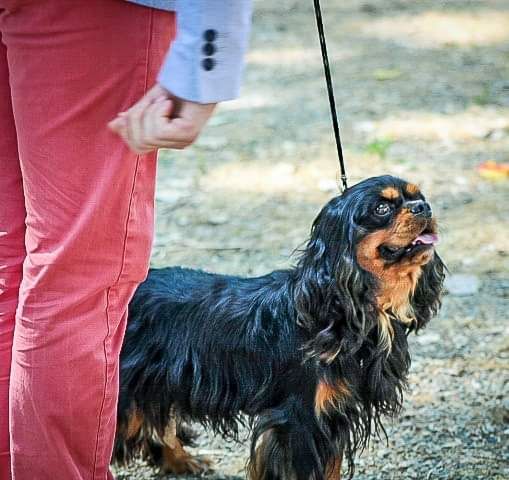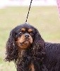 Jolie tête bien masculine, exc stop, B longueur de chanfrein. Oreilles bien attachées, denture convenable, B encolore, dos solide B attache de fouet, B forme de cotes exc poitrine, coudes bien placés.J'aimerai un poil plus soyeux.Démarche un peu irrégulière, le chien gagnerait à être présenté en laisse molle.