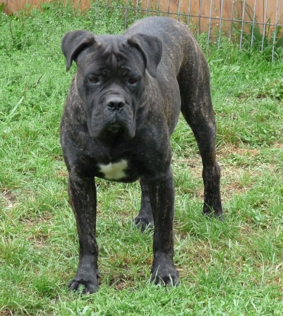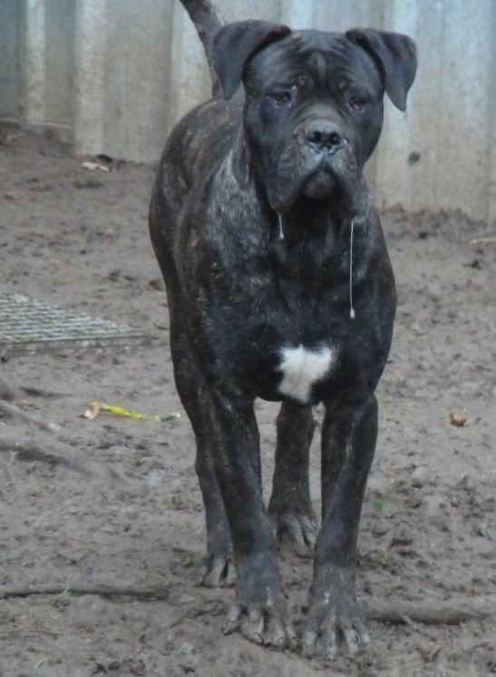 Malendrin est un cane corso court et trapus, il a une forte ossature finie par de beaux pieds de chat bien plantés !