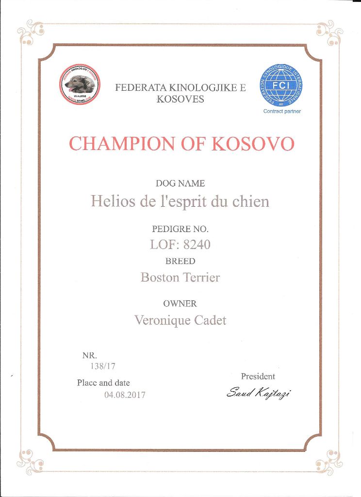 Chien Boston Terrier CH. Moi helios de l'esprit du chien