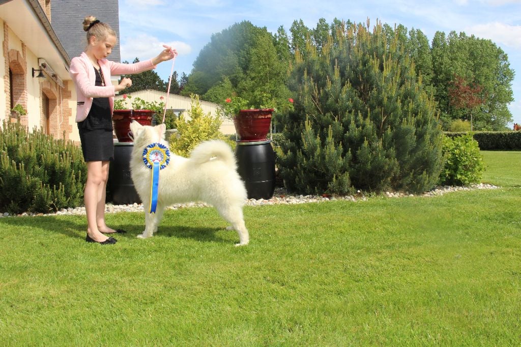 Occlusion correctExcellente pigmentation , sourire samoyèdeTrès bonne forme et couleur ?il Excellents pieds , excellente ossature Chienne compacte avec bonne attache de queueFourrure de bébé , chienne grandit en balanceSe présente bien , allures bien coordonnées.