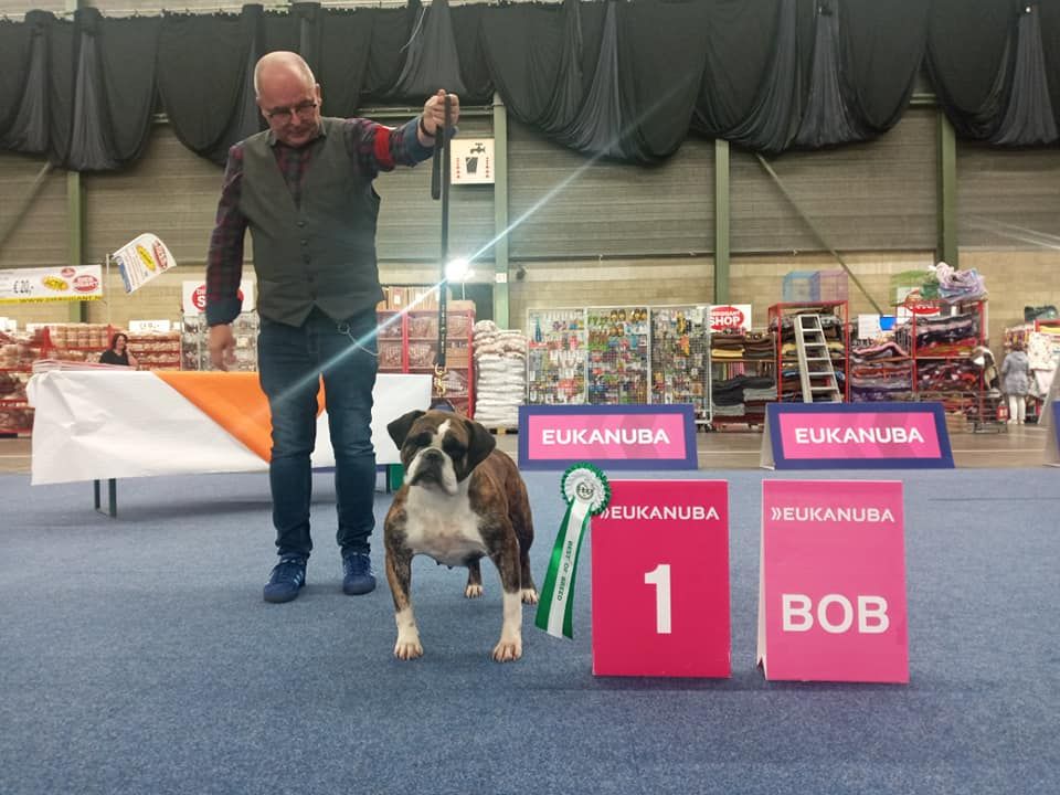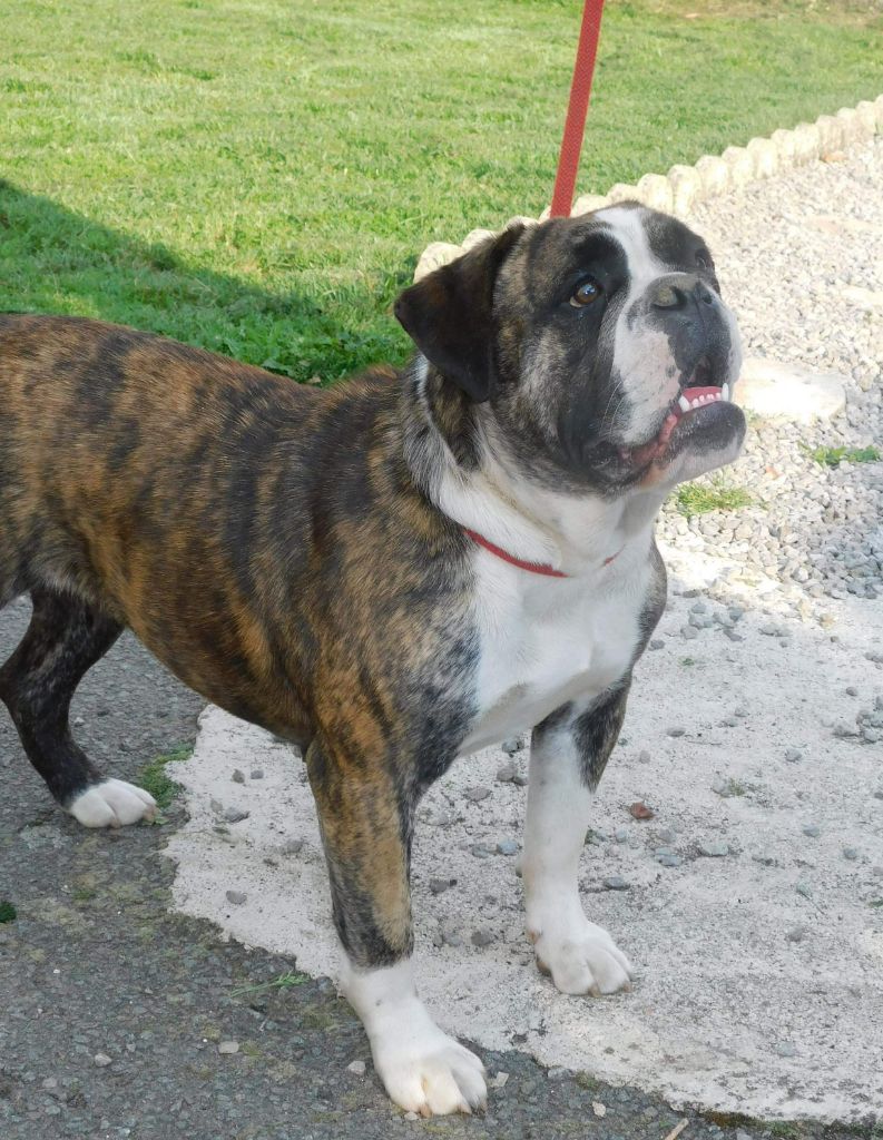 Chien Bulldog continental Miss brindle pin up Des Dieux De L'arène