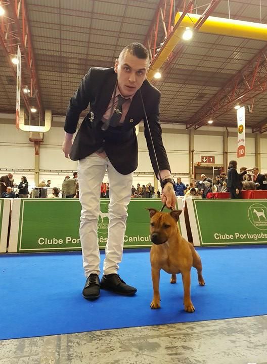 Dentition complète en ciseaux, attention dents en pinceBonne présentationJe préfèrerais les oreilles un peu plus en rosePoitrine bien descendueJe préfèrerais des ongles noirsBonne ligne du dessusChienne bien muscléeBonne angulation avant et arrièreLes jarrets sont un peu ouvert à l'arrière, serrés à l'arrièreBonne présentation