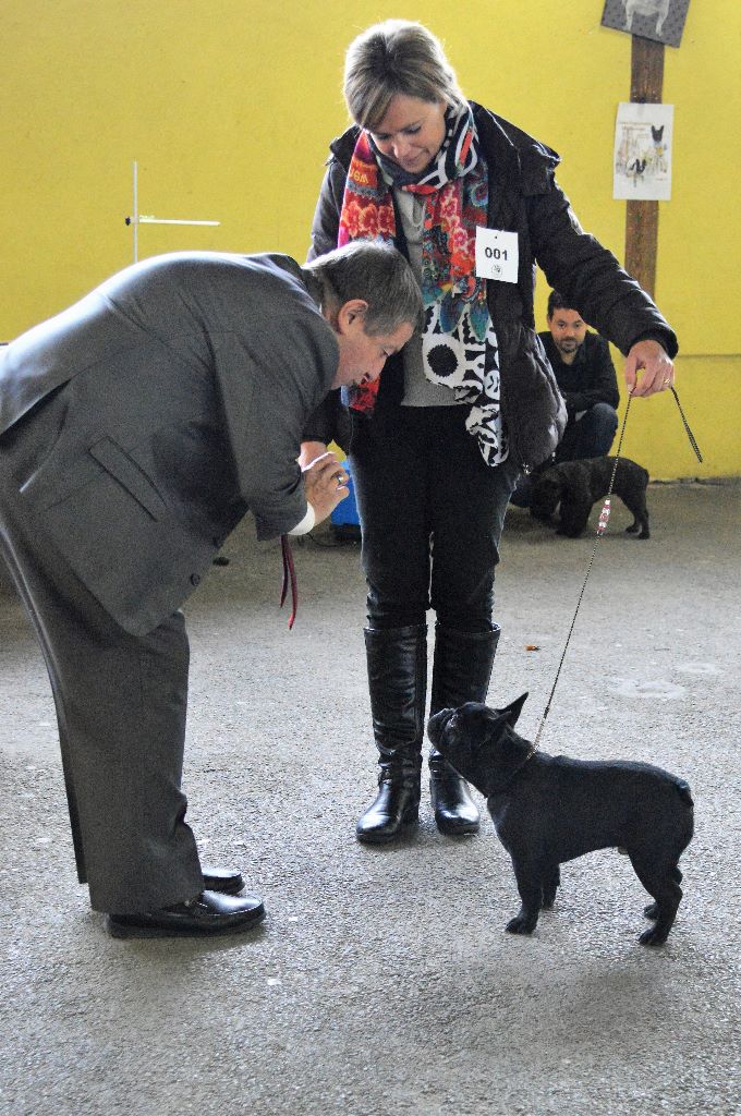 Bon articulé Menton correct Narines ouvertes Bon yeux formes et couleur, Bon crâne Bonne ossature Ongles noirs Pieds légèrement écrasés Bonnes proportions, Bon ArM bien musclé Queue correcte Bringé foncé Sujet assez court Démarche de jeune mais le mouvement est bien libre avec entrain Propulsion dans la démarche