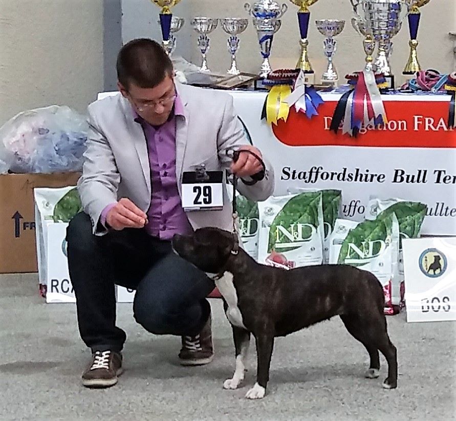 Chien Staffordshire Bull Terrier CH. Lokiana Nightwish at brindle wood