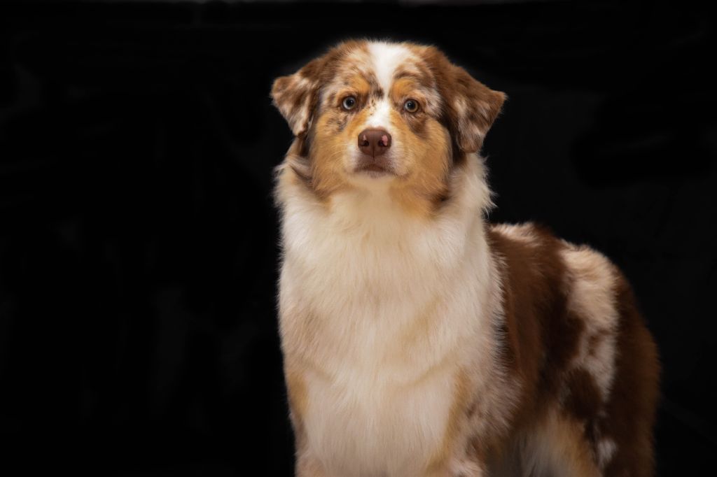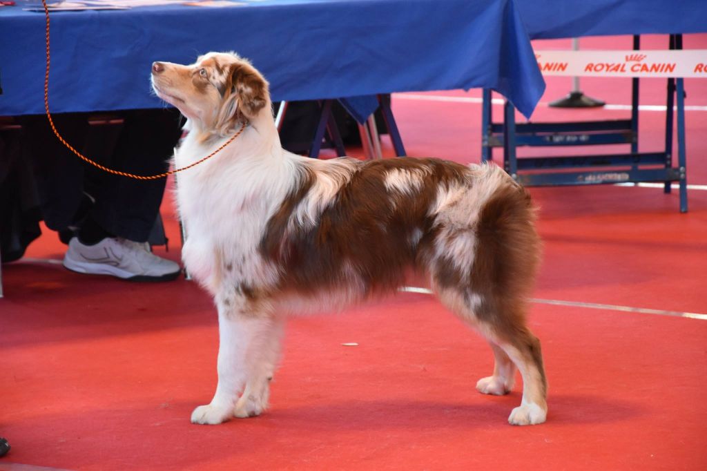 Rouge MerleDCCTête correcteOreilles B placées, B formeBonne construction d'ens,Membres bien dessinés et angulés,Exc mouvement ds type