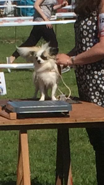 Très belle têteStop suffisamment marquéFontanelle ferméeTrès bonne mâchoiresOreilles bien attachéesTrès bonne nature de poil et en conditionLigne de dos un peu vousséedevra s'étofferavant et arrière bien parallèlesTrès bonne démarcheQueue bien portée