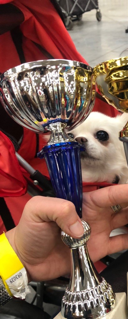Vous trouverez son histoire en page d'accueil. Cette petite princesse est tout simplement mon objectif : zéro défaut et de toute beauté : un très beau type sans excès avec des lignes arrondies et une ossature fine, un dos solide, indemne de toutes les tares souvent présentes chez le chihuahua, cette chienne de couleur rare est tout simplement un bijou.