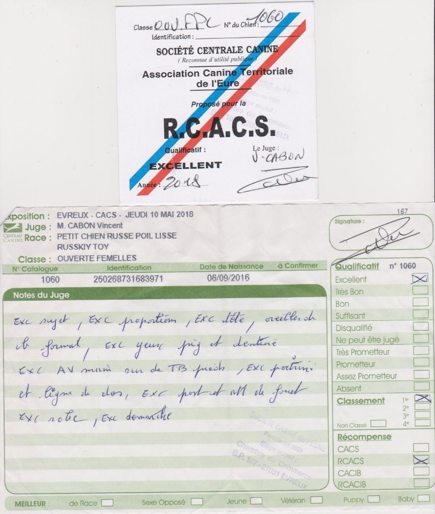- 1 er Excellent CACS CACIB Meilleure de Race de sexe opposé