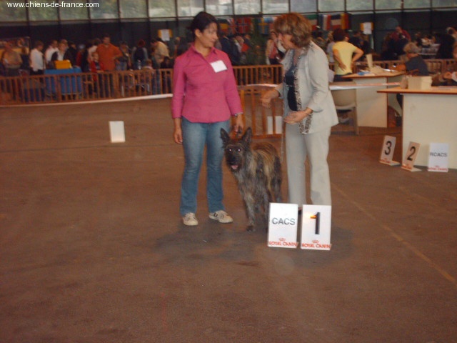 sujet harmonieux dans ses proportions.La tête est jolie et très expressive.Bel oeil.Oreilles bien portées.Excellente sortie d'encolure.La poitrine est bien développée et profonde.Le mouvement confirme la bonne angulation de l'épaule.La poussée des posterieurs est puissante.Très bonne texture du poil. Sujet un peu réservé à l'examen individuel-" je lui trouve pas de défauts "