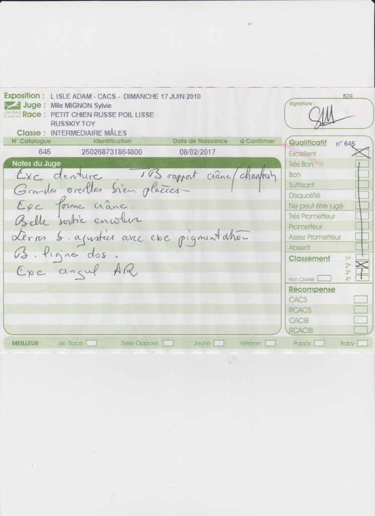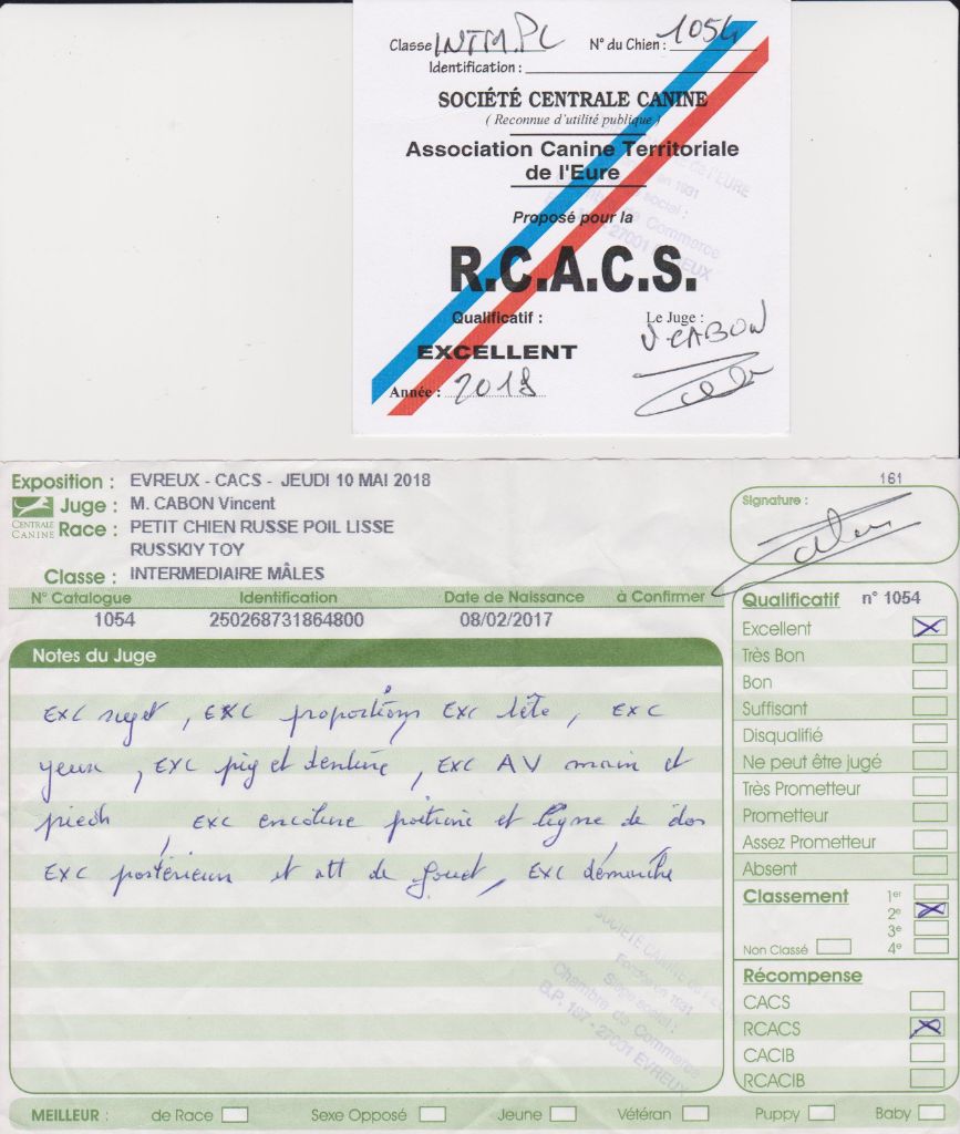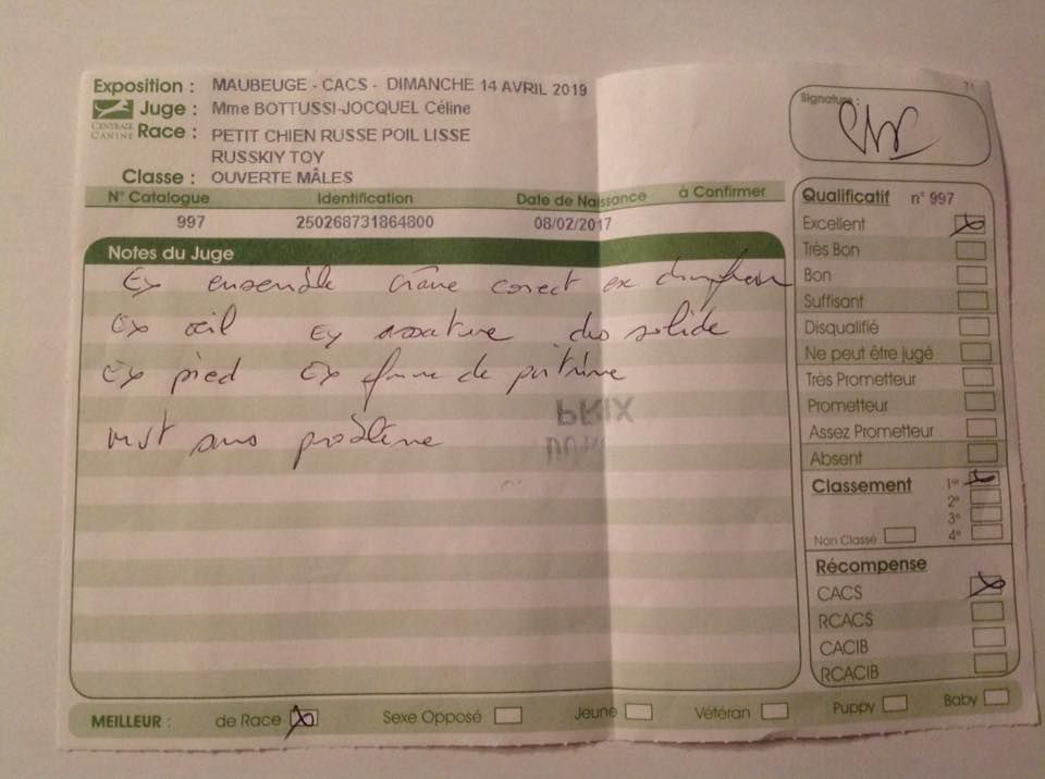 - 1er Excellent CACS CACIB Meilleur de race