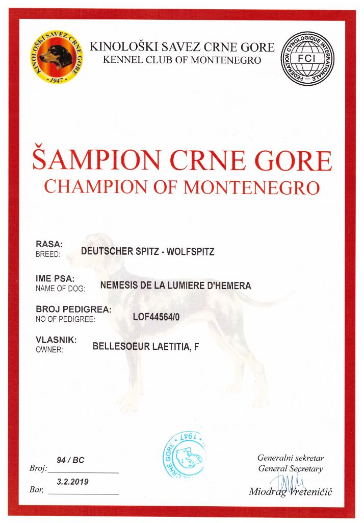 - Jeune Championne du Monténégro. Young Champion of Monténégro