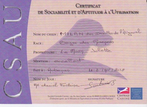 Manifestion : CERTIF DE SOCIABILITE & D'APTITUDE à L'UTILISATION - Juge : Daniel Fontaine