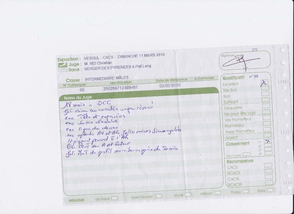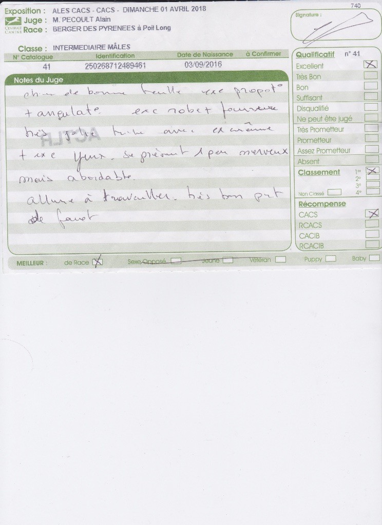 - 1ER EXC CACS MEILLEUR DE RACE