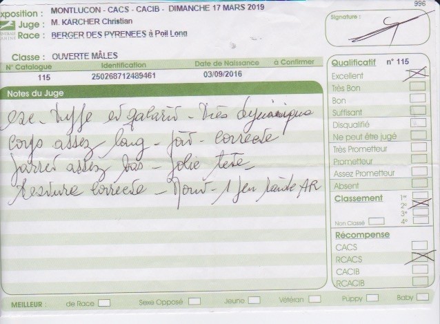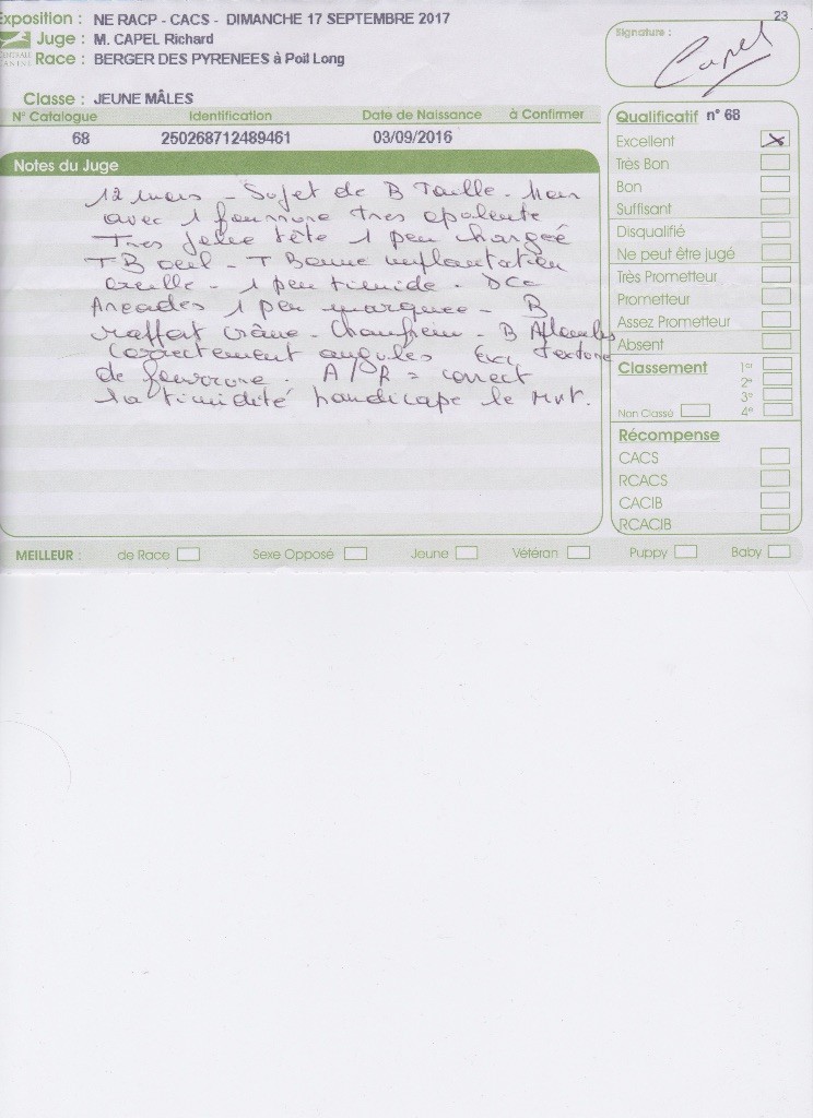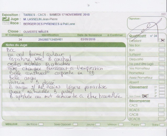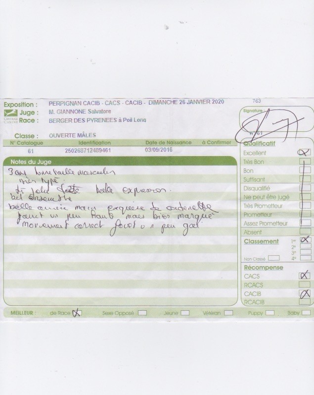 Manifestion : PERPIGNAN CACIB - Juge : GIANNONE