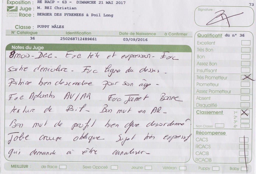 - 1er Très prometteur classe Puppy