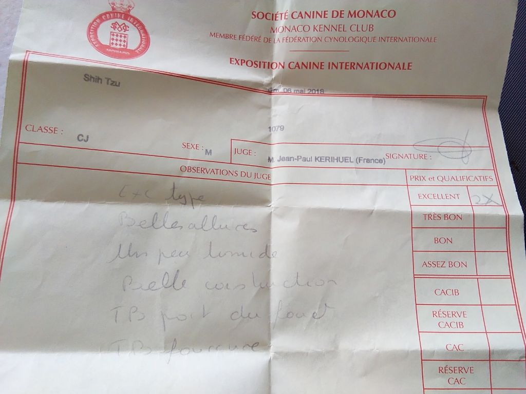 TB construction osseuseTête typiqueSuffisant de couToison imposanteEn mouvement,queue portée très élégamentBelle présentationBeau mouvementMerci au juge qui a adoré mon chien (c'est vrai)et merci à ma concurrente proche, très sympathique,une belle rencontre.