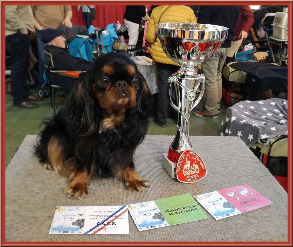 2018: BOURGES: Meilleur Puppy; LIMOGES: Meilleur Jeune et Meilleur de Race; AURILLAC:Meilleur Jeune et Meilleur de Race; CHATEL GUYON: Meilleur Jeune et BOG 2 Junior; SORGES: Meilleur Jeune et BOG 3 Junior; Nationale d'Elevage NEVERS: Meilleur Jeune (Championne Jeune de France); POITIERS (Spé de Race): CACS; CACIB et BOB