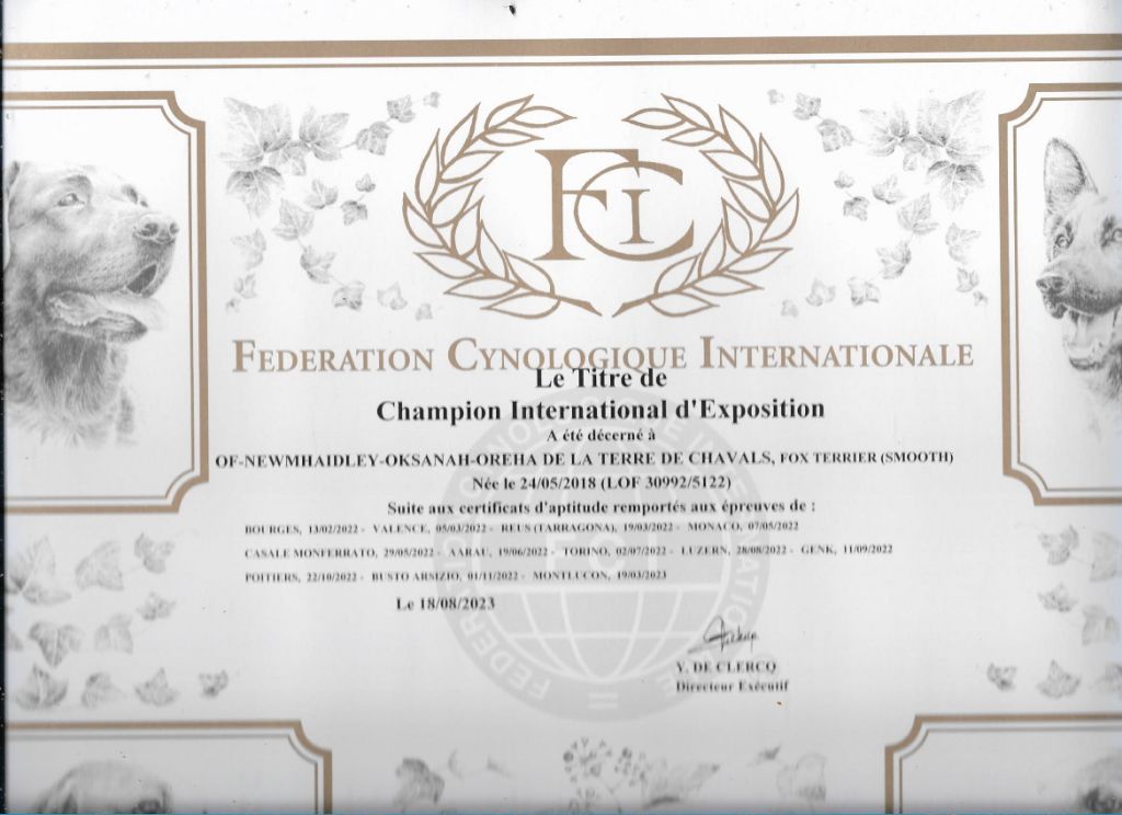 Championne Internationale d'Exposition.HOMOLOGATION EN COURS