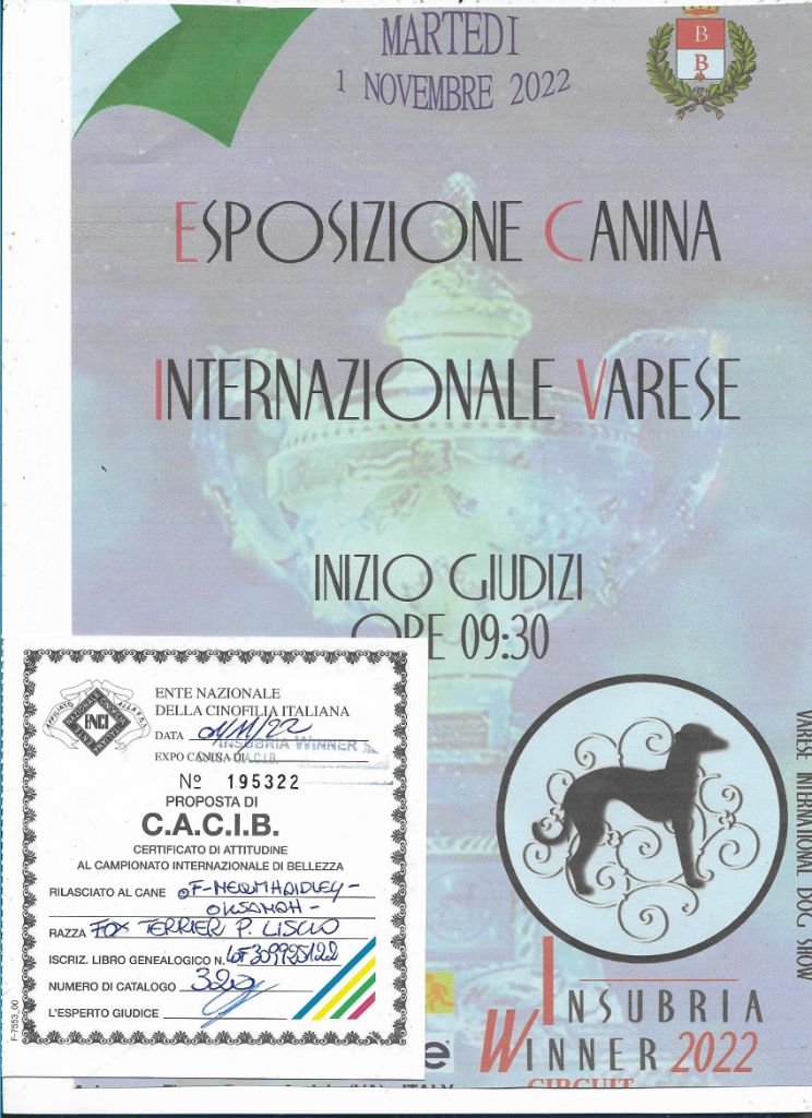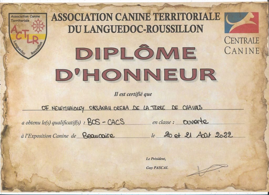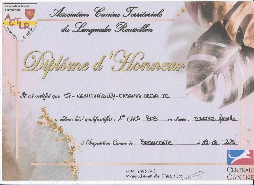 - 1ER EXCELLENT CACS CACIB BOS MEILLEURE DE SEXE OPPOSE.