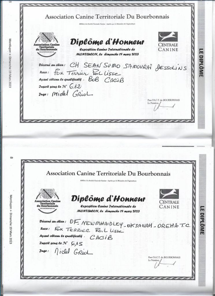 Manifestion : C A C S & C A C I B - Juge : M. BEZZECCHI Giulio (Italie).