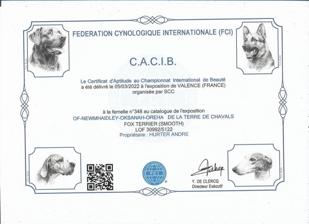 TITULAIRE DE 20 CACS & 4 CACIB EN FRANCE .