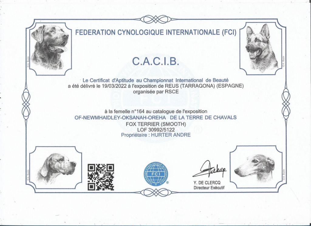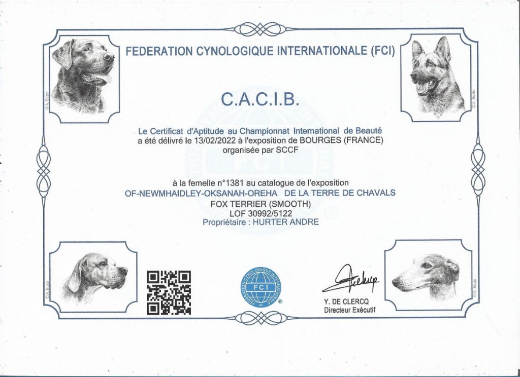 - FCI be. RESERVE CACIB HOMOLOGUEE EN CACIB
