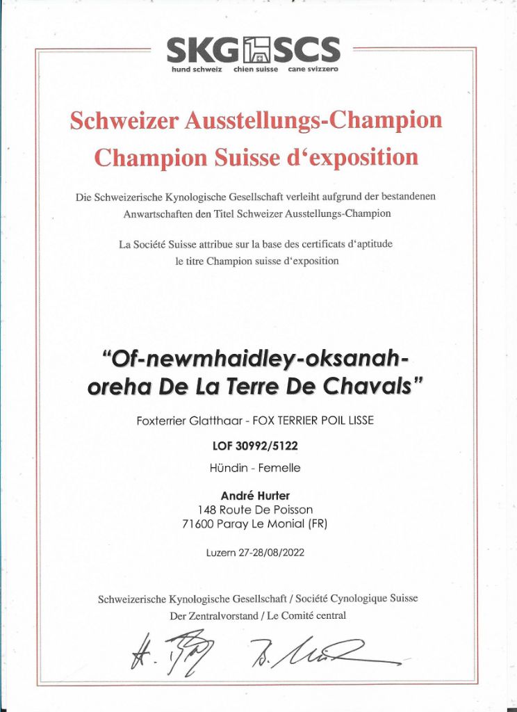 - TITRE DE CHAMPION D'EXPOSITION SUISSE