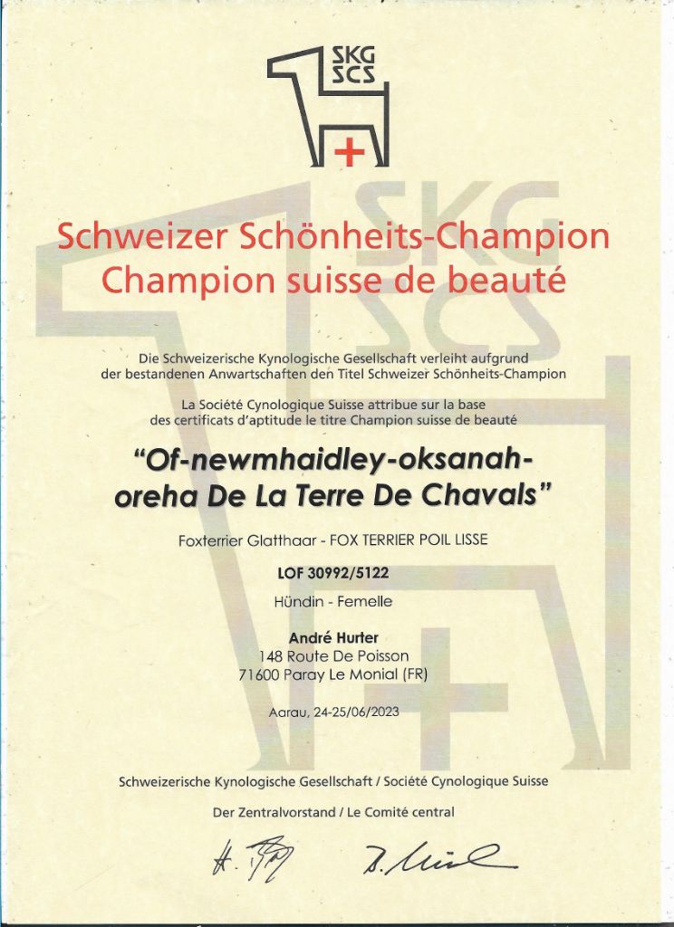 - TITRE DE CHAMPION SUISSE DE BEAUTE