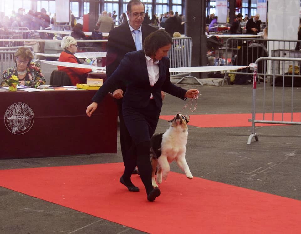 classe Travail : Feminine bitch, nice size ears, correct scissors bite.Prefer a bit more neck and longer upper armBeautiful physic condition, clean coming and going. Mod reach and drive.Good topline, lovely temperament
