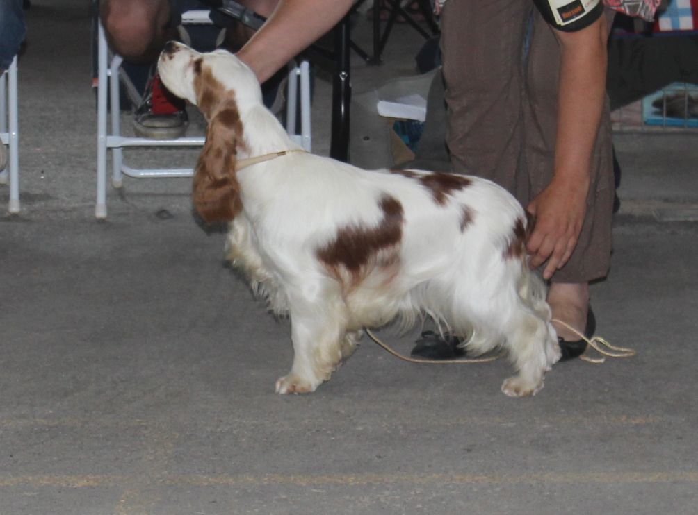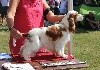 13 mois, DCC, blanc et orange parti-coloreJolie tête féminine,Exc pigmentationExc rapport crane/ museauExc attache et port d'oreillesLéger fanonJolies babinesExc encolureEsc avant et arrière mainB Poitrine j'aimerais + développéeB ossature pourrait être plus importanteExc attache de fouetB démarche, pourrait être plus grouillantea besoin de + d'expérience dans le ring