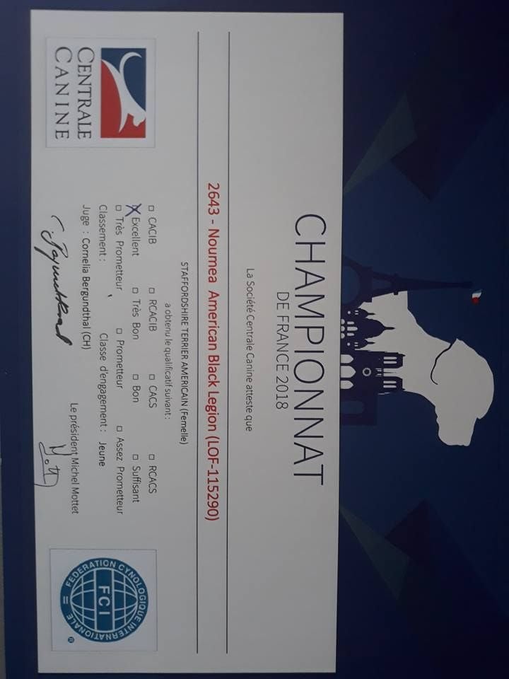 Chien American Staffordshire Terrier CH. Nouméa American Black Legion