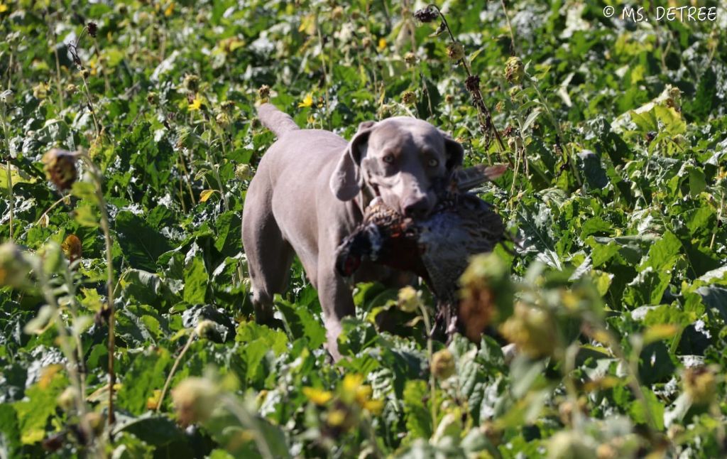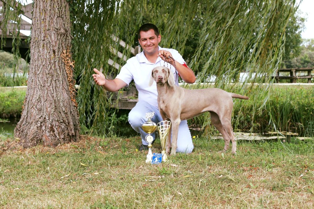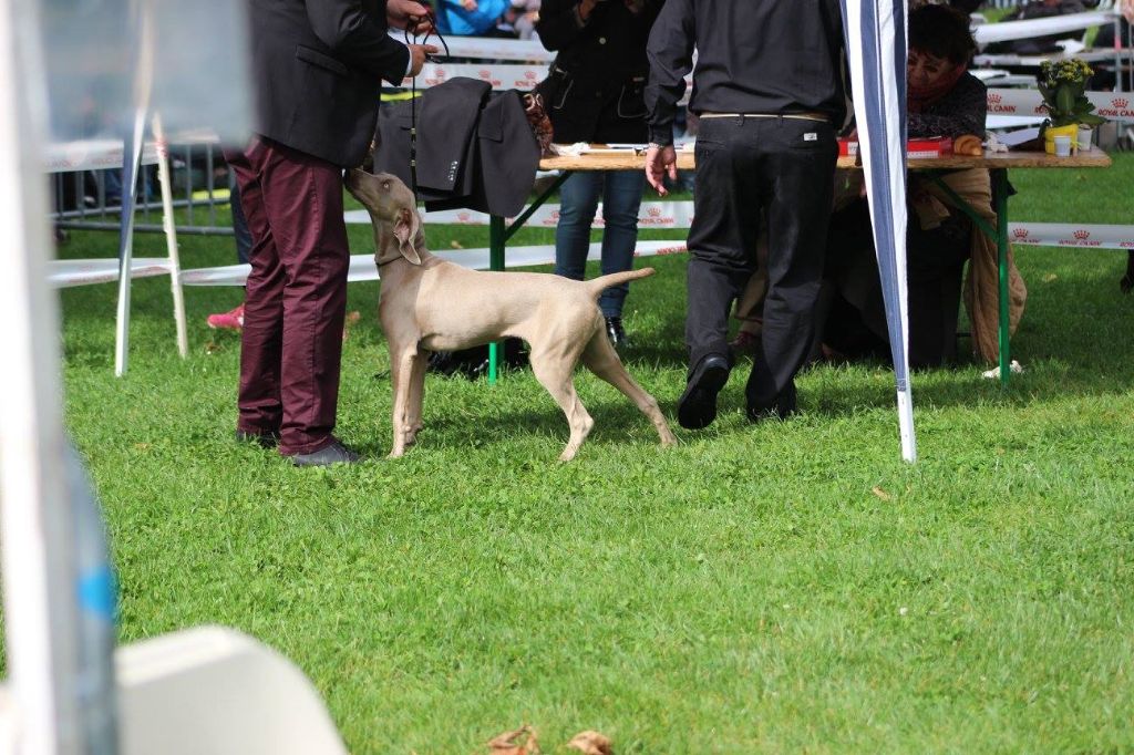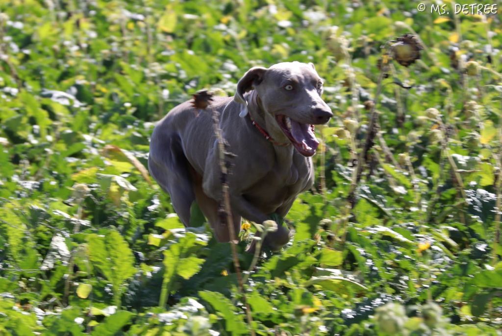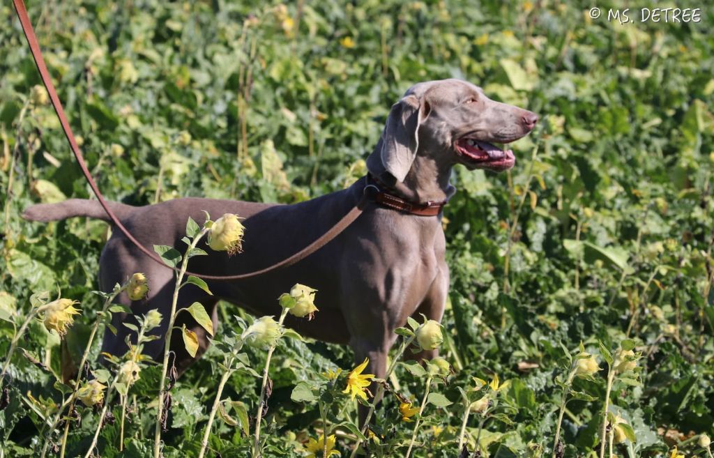 Chien Braque de Weimar TR. Mercedes magma Des Limons Aux Epis Ambrés
