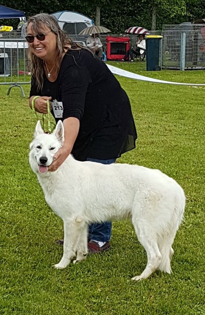 CLASSE OUVERTE - SPECIALE DE RACE - DCC, trés jolie tête, Exc stop, Bel oeil foncé, Exc forme oreille bien portée, belle encolure, Exc ligne du dessus, Angulations correctes, TB aplombs et pieds, Bonne ossature, Belles allures, Exc mécanique1er EXCELLENT / CACS / CACIB / MEILLEUR DE RACE / 2e MEILLEUR COUPLE (avec Drakar du paradis boupi)