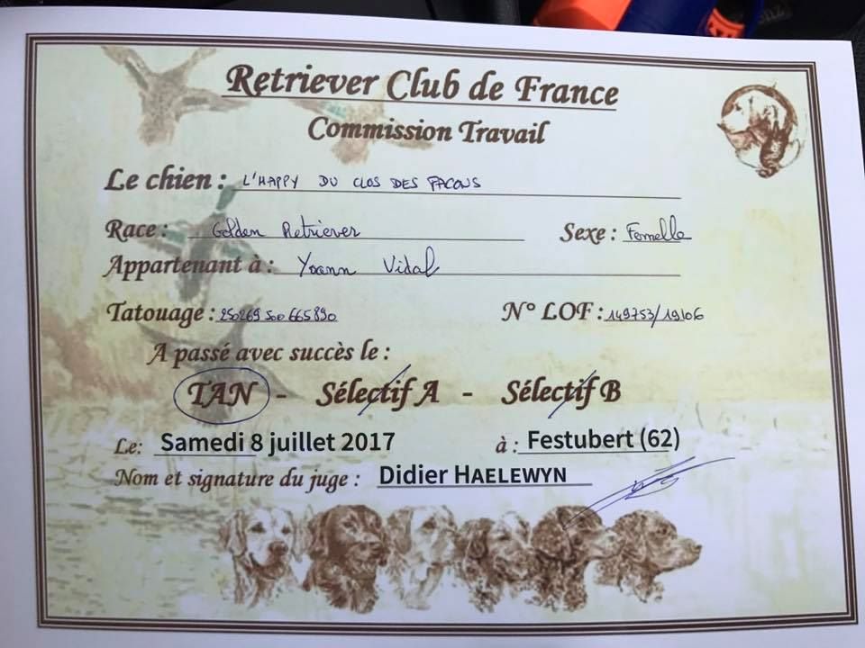 Chien Golden Retriever L'happy du Clos des Facons