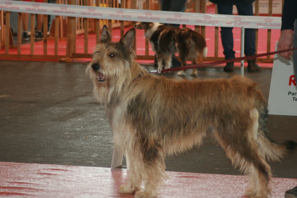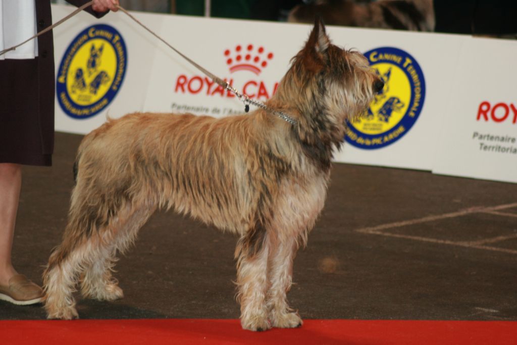 excellent type, excellent expression, jolie tête, excellent crâne, excellent chanfrein, excellent parallélisme, oreilles bien placées et bien portées, ?il de bonne forme , de bonne couleur, bien construit dans son ensemble, aplombs et angulations correctes, excellent épaule, excellente poitrine, excellent dos, poil excellent couleur, excellente longueur et excellente texture présentation à travailler allures correctes