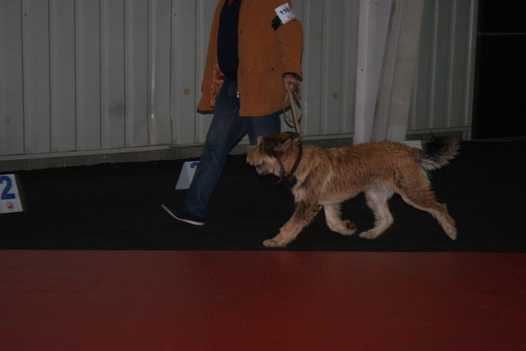 un peu réservé à l'examen individuel,jolie tête,oeil bien foncé de très bonne forme, très léger décalage des incisives (mâchoires), sujet qui a de la substance osseuse sans excès, se développe harmonieusement,très bonne longueur de corps,sujet qui doit s'habituer à l'ambiance expo