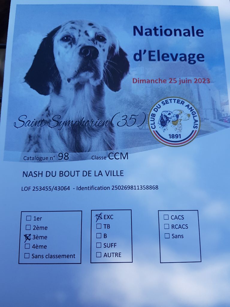 Chien Setter Anglais TR. CH. Nash Du bout de la ville