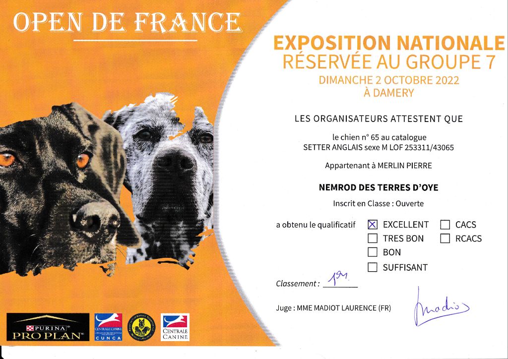 EXCELLENT CLASSE OUVERTE MALE NE CLERGOUX 2022