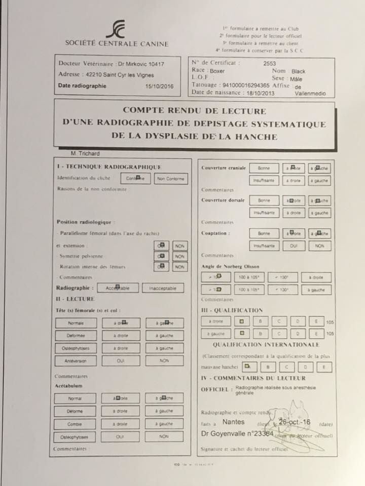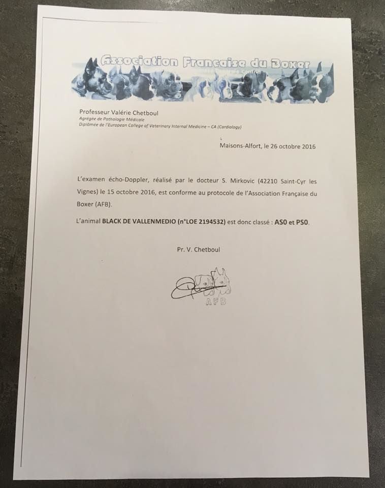 Examen écho-doppler ASO/ PSO dysplasie A . Une exposition faite classé excellent sortie 3 ème.