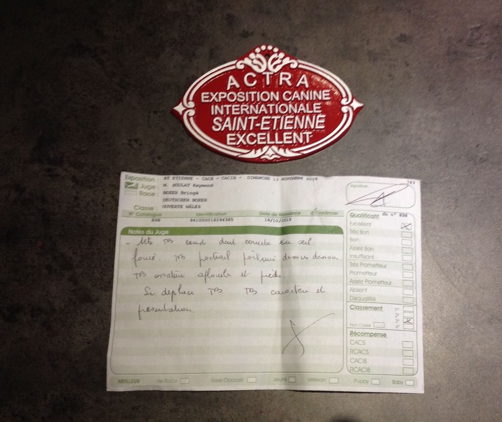 Classé 3ème excellent à St Etienne exposition canine internationale (1 ère expo )