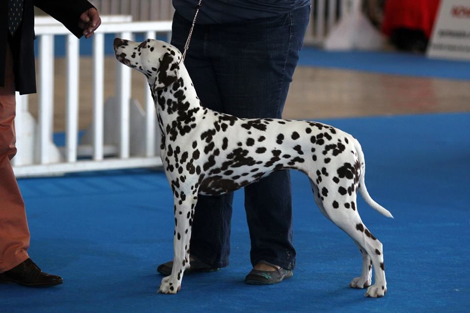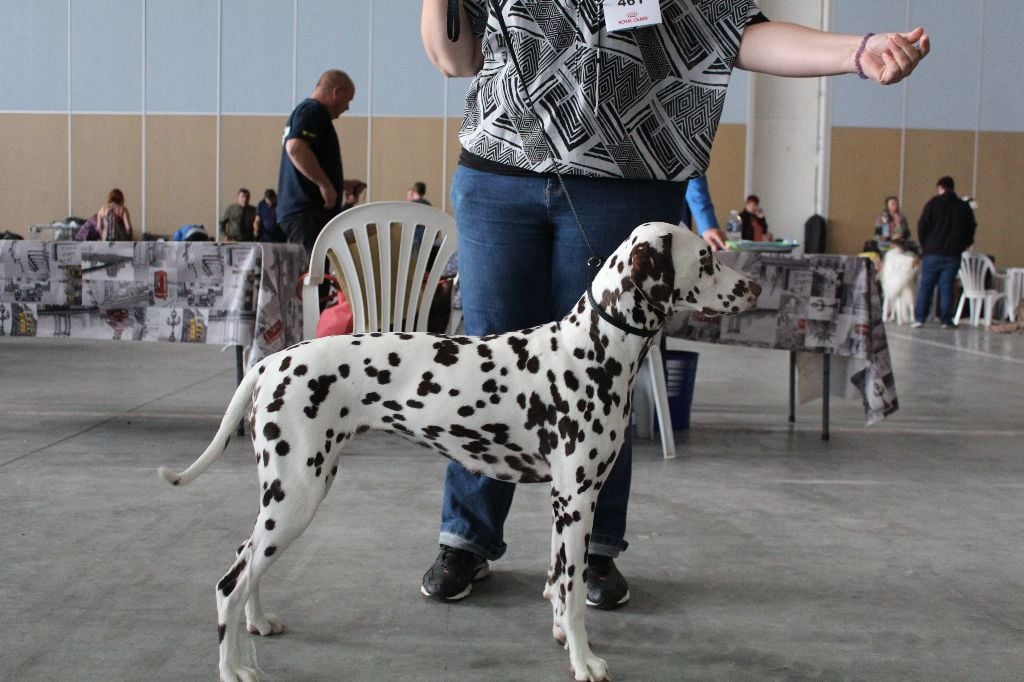 - Dentition complète en ciseau- Excellent crâne, stop et chanfrein, oreilles bien vissées.- Excellent ligne du dessus, les côtes doivent se développer.- Très bon antérieurs et postérieurs, excellents pieds, queue bien vissée.- Bonne grosseur et répartition des tâches.- Présentation à travailler