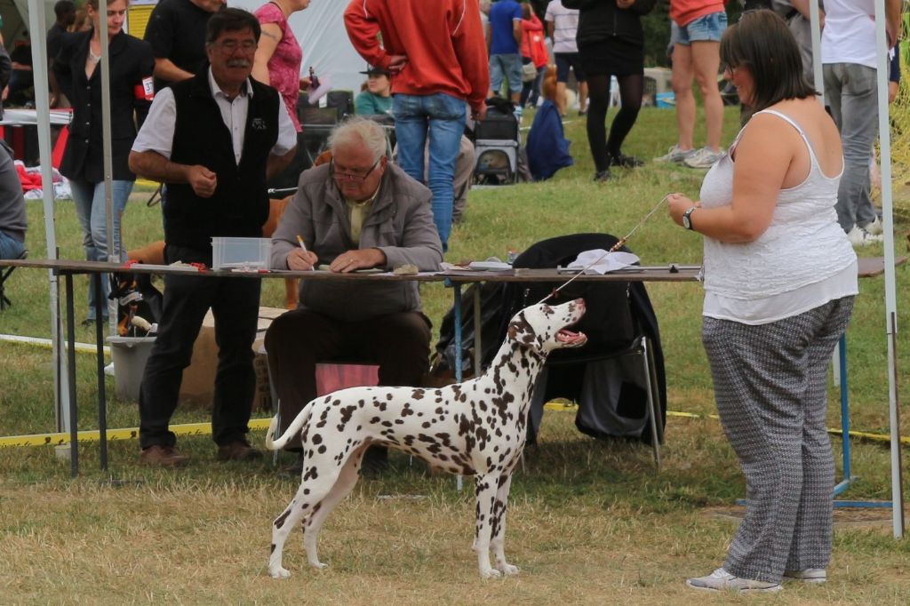 - Dentition complète en ciseaux.- Jeune chienne de construction encore légère mais bien dans son ensemble.- Bonne tête, bonnes oreilles.- Poitrine demande à se développer- Bonne ligne de dos, bonne arrière-main, bons aplombs, bonnes angulations.- Bonne pigmentation avec une bonne répartition des tâches.- Bonnes allures.- Présentation un peu réservée.