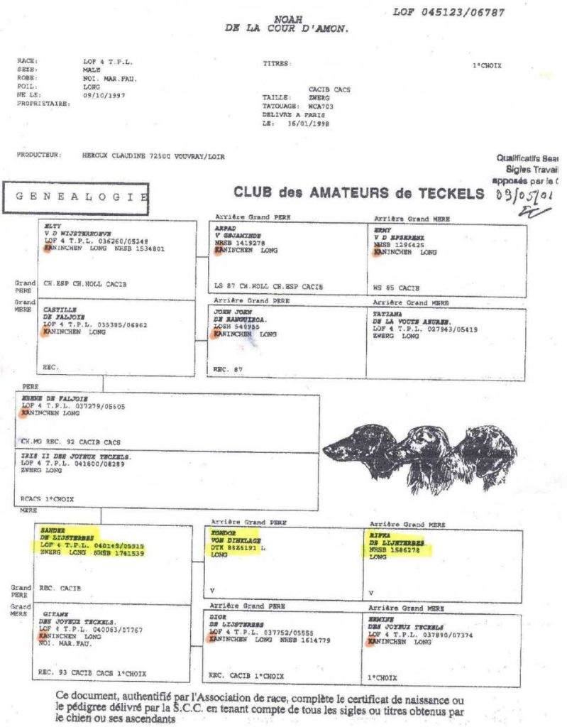 père de Noah / Rupert + Starlette Cour Amon / Amore-Mio + Bo'Dega + Emir + Faustine + Fleuron + Florentin + G'Sica + Hawaï + Jade + Magda + Miss Tyk + Moaï Garrigues Reals – Daphnie Guisberg – Ilizarov + In Tel Quel Massugeon – Miss Choco Generade
